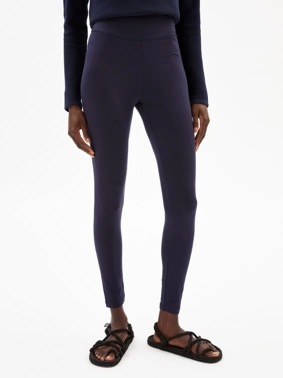 Die Leggings aus der ARMEDANGELS “Faribaa” Kollektion verzaubert mit angenehmen Tragekomfort aus nachhaltig produzierter Baumwolle. Der breite Bund schmiegt sich perfekt an die Silhouette an, ohne einzuschneiden. Kombiniert mit dem passenden Shirt, entsteht ein bequemes Set für leichte Yoga-Einheiten oder zum Relaxen.