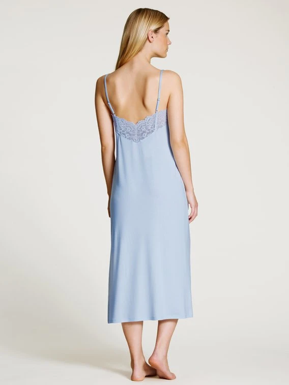 Das ELEGANT DREAMS Nachthemd mit Spaghettiträgern von CALIDA trägt seinen Namen völlig zurecht: Eine üppige Spitzenbordüre verziert einen verführerischen V-Ausschnitt, elegant fließende TENCEL™ Modal-Fasern verleihen Ihnen ein seidiges Tragegefühl. Das zarte Blau haben wir „wäschig“ getauft – also einfach perfekt für wunderschöne Lingerie mit unkomplizierter CALIDA-Note.