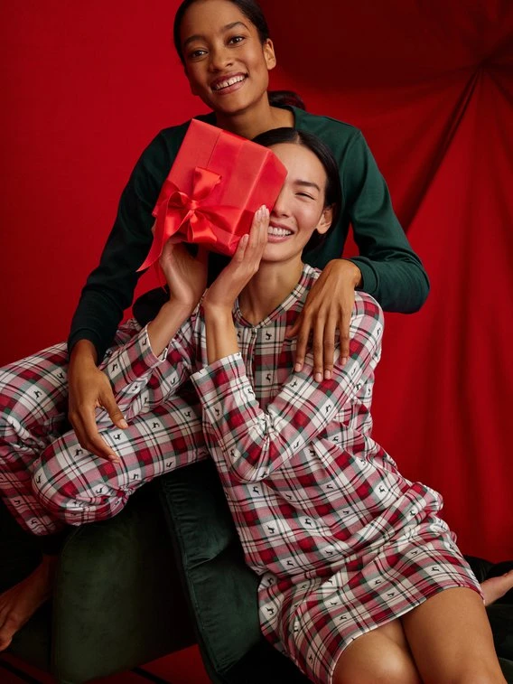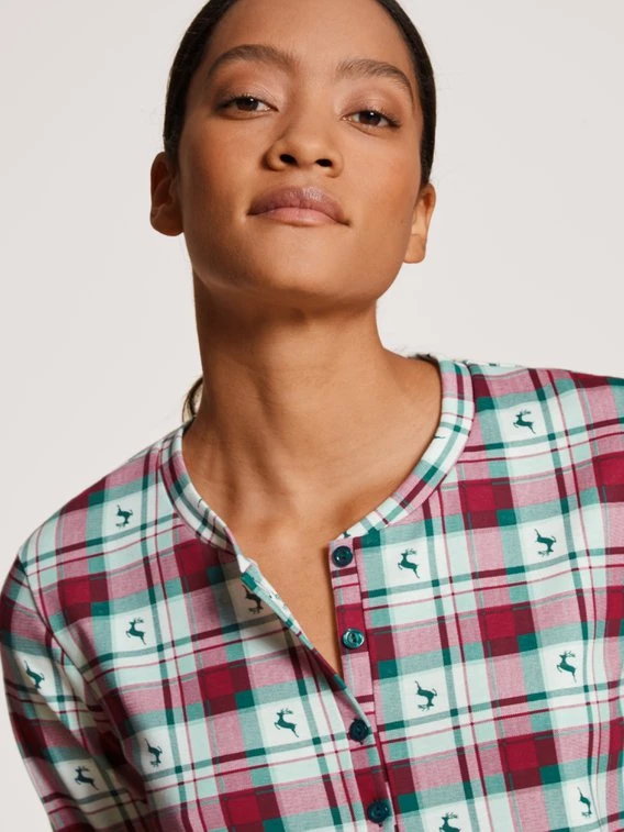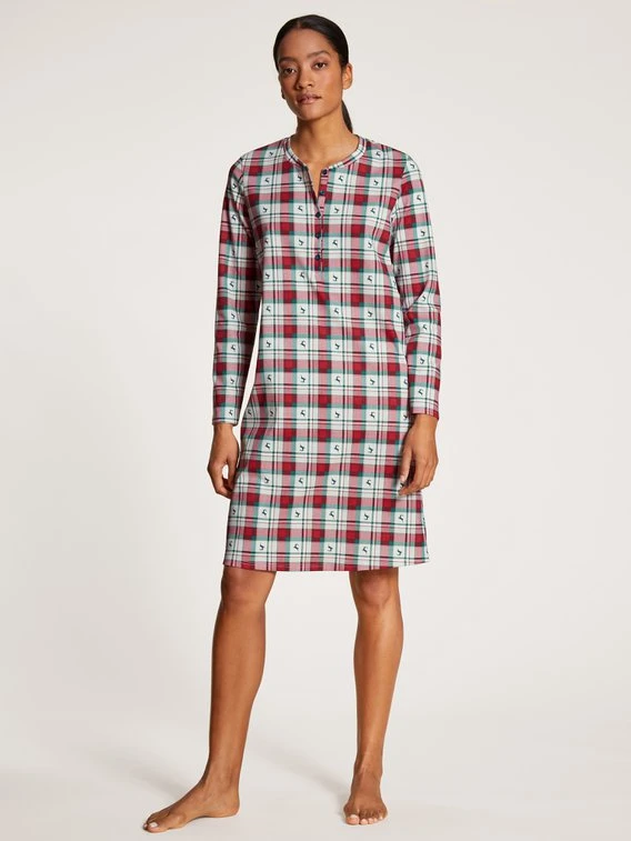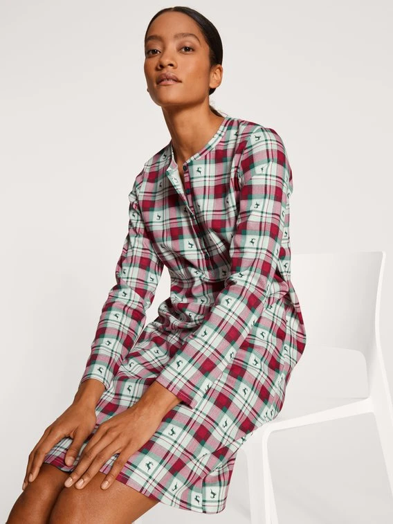 Zurückhaltung und Minimalismus? Ach was! Zu Weihnachten wollen wir fröhliche Sleepwear, die das Fest mit Vollgas einläutet. Im FAMILY & FRIENDS Langarm-Nachthemd von CALIDA beginnt die schöne Bescherung schon vor dem Geschenkeauspacken. Schwere Baumwolle in warmer Interlock-Qualität legt sich wie eine Kuscheldecke um den Körper, der Festtagsprint feiert die Klassiker des Advents.