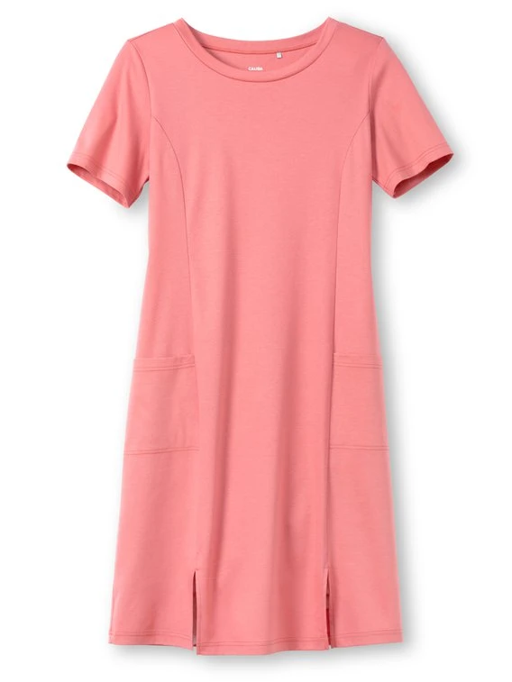 Wenn der Crossover zwischen Bett und Couch mühelos gelingt, spricht man von einem Loungedress. Der FAVOURITES SUNFLOWER Loungedress darf sich diesen Titel in jedem Fall abholen. Das lässig geschnittene T-Shirt-Kleid mit seitlichen Pattentaschen, Rundhalsausschnitt und Silhouetten-freundlichen Nahtdetails begeistert außerdem durch seine glatte Baumwollstruktur und den überschäumend fröhlichen Roséton.