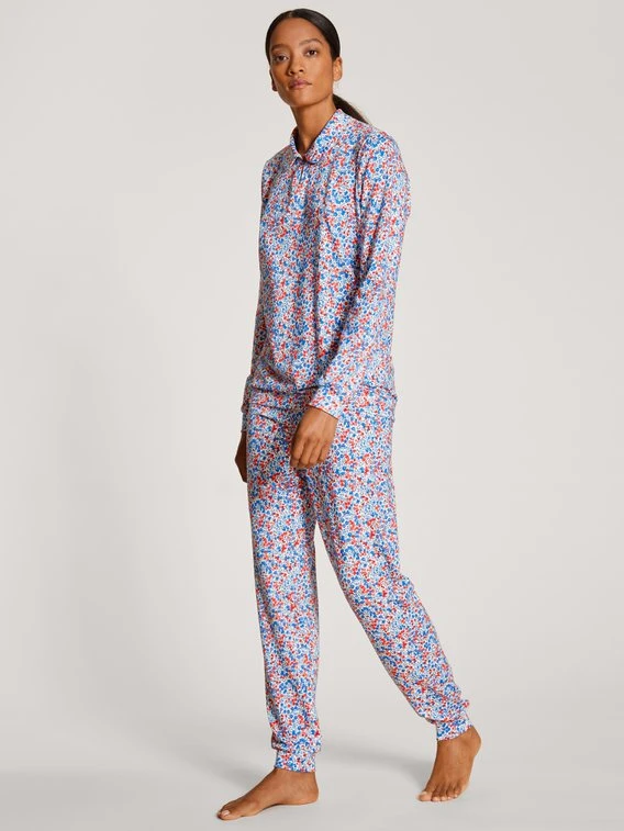 |Gegen den LIBERTY DREAMS Bündchen-Pyjama von CALIDA wirkt selbst der üppigste Blumenstrauß ganz schön bescheiden. Denn beim exklusiven Print in Zusammenarbeit mit der Firma Liberty haben wir sicher nicht an Blüten gespart. Genauso wenig wie an hochwertigen Baumwoll-Modal-Fasern oder einem lässigen Sitz. Der Clou? Vielleicht der Bubikragen am Langarmoberteil? Oder doch der einfach strahlende Look?