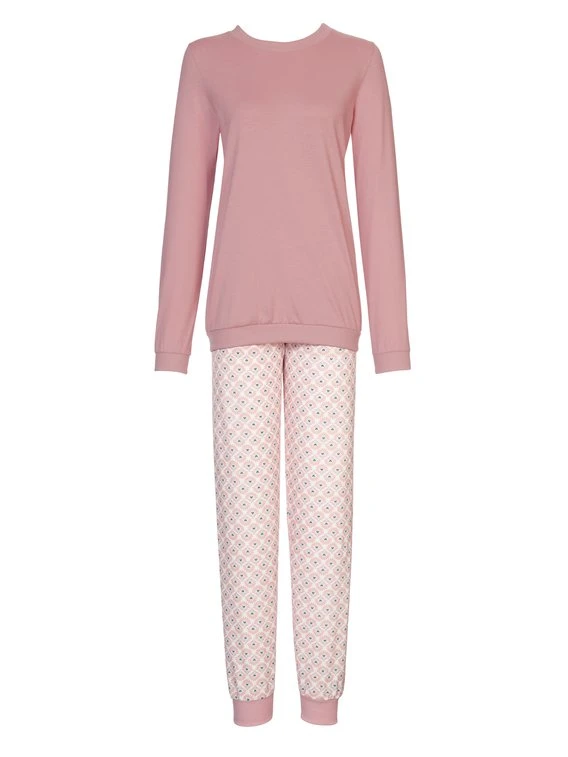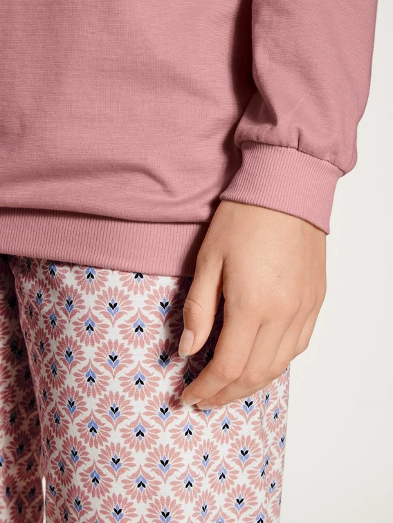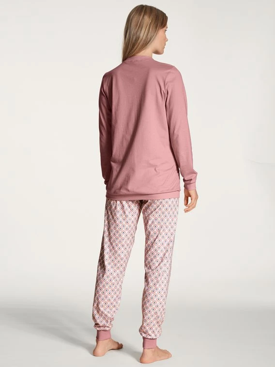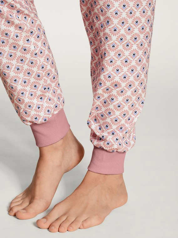 Der Pyjama aus der LOVELY NIGHTS Serie aus dem Qualitätshaus CALIDA besticht mit 100% weicher Baumwolle. Der Pyjama besteht aus einer gemusterten Hose und einem unifarbenen Shirt mit eingefassten Rundhalsausschnitt und punktet zusätzlich durch weiche Bündchen an allen Abschlüssen.