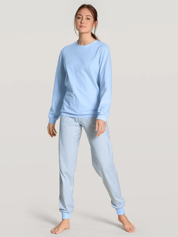 Der Pyjama aus der LOVELY NIGHTS Serie aus dem Qualitätshaus CALIDA besticht mit 100% weicher Baumwolle. Der Pyjama besteht aus einer gemusterten Hose und einem unifarbenen Shirt mit eingefassten Rundhalsausschnitt und punktet zusätzlich durch weiche Bündchen an allen Abschlüssen.