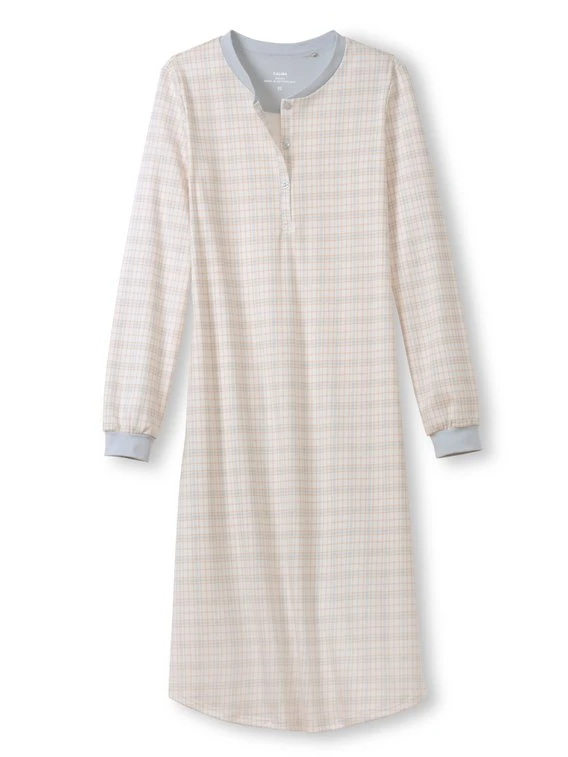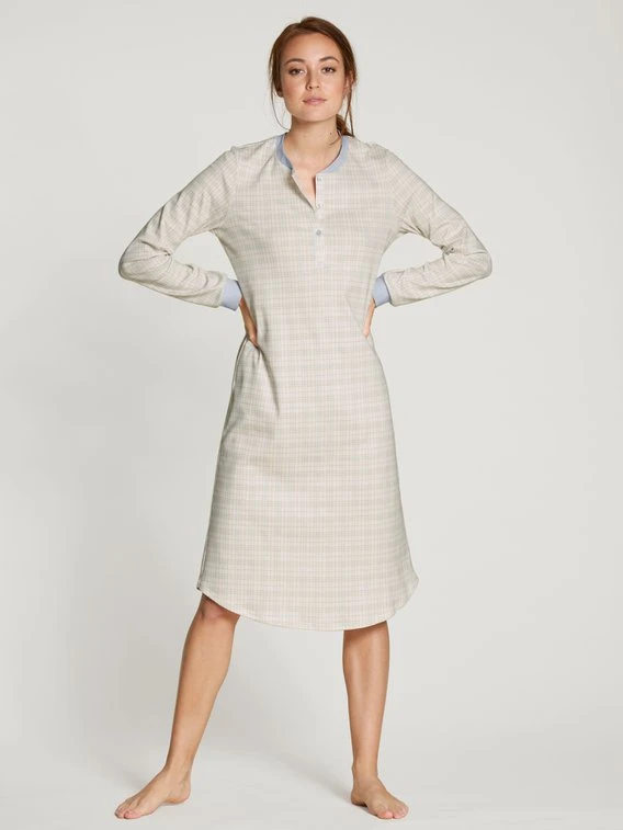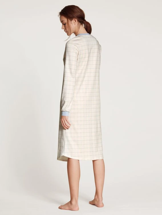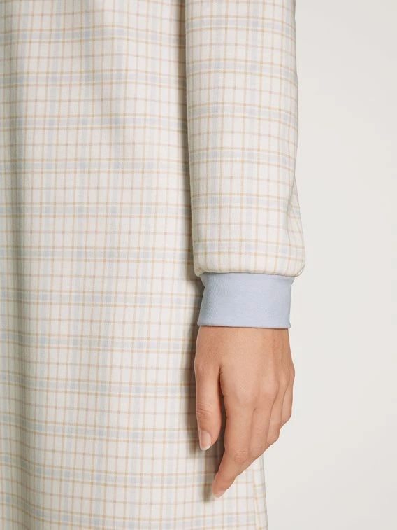 Zeitloses Karo führt die Hitliste beliebter Sleepwear-Prints unbeirrt an. Auf dem MIDNIGHT CHECKS Nachtkleid von CALIDA zeigt es sich auf die besonders sanfte Art. Das passt perfekt zum femininen Look mit Rundhals und Knopfleiste, Bündchenärmeln und Tunikaschnitt. Hier gelten keine Kompromisse: Die gebrushte Baumwolle ist ausgesprochen warm, hochwertig, langlebig und strapazierfähig.