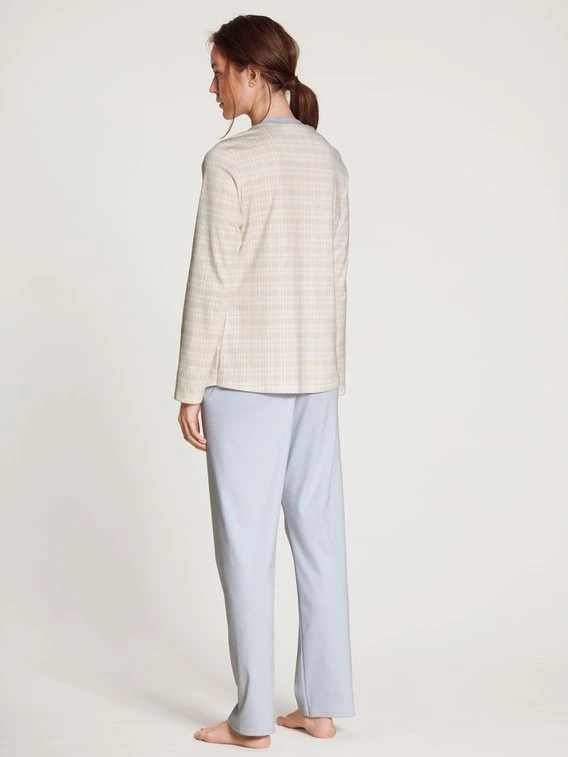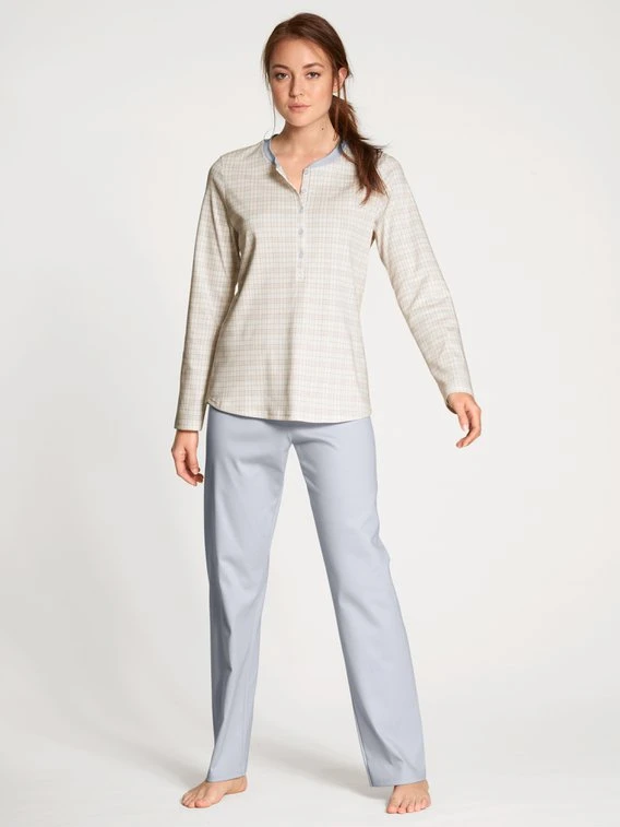 Mit vorlauten Statements hat der MIDNIGHT CHECKS Pyjama von CALIDA absolut nichts am Hut. Er zelebriert lieber sanfte Design- und Farbklassiker femininer Mode. Nur beim Thema Winterkomfort ist jeder seiner Sätze ein Ausrufezeichen. Langarmoberteil und gerade geschnittene Hose bestehen aus gebrushter Baumwolle, deren besondere Struktur dem Körper eine Extraportion Wärme schenkt.