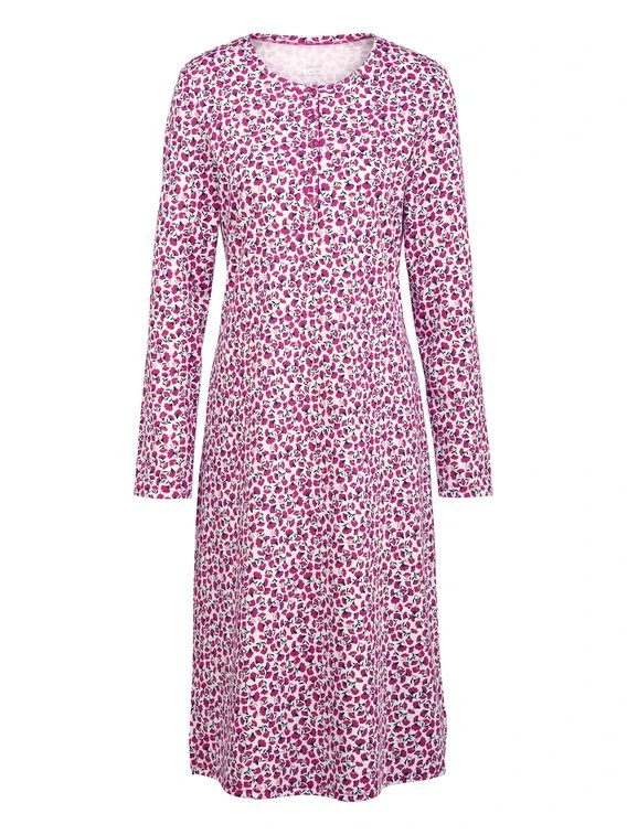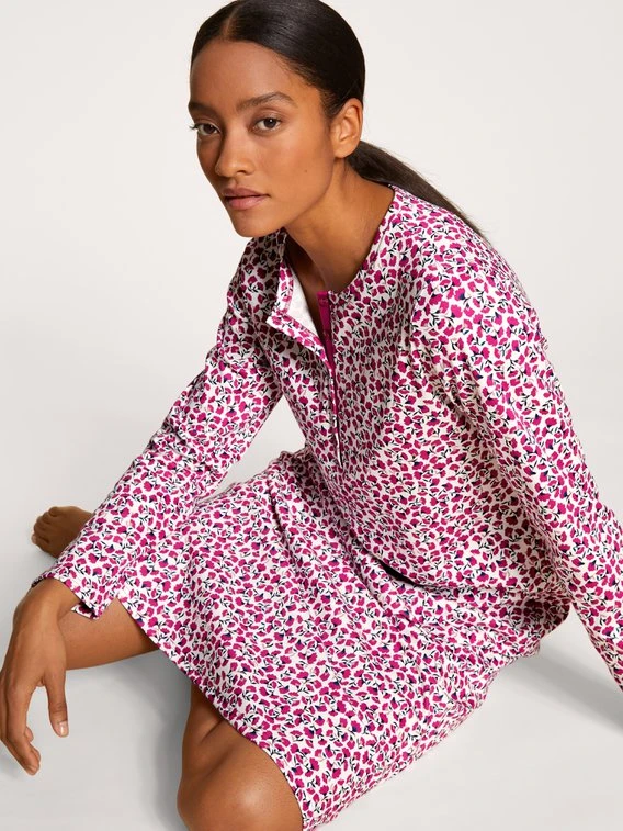 Für manche soll es rote Rosen regnen. Auf dem MIDNIGHT DREAMS Nightshirt von CALIDA schüttet es tausende Orchideen: Das fröhlich gemusterte Langarm-Nachtkleid mit Knopfleiste und Tunikaschnitt ist eine wunderbar warme Sleepwear-Idee aus gebrushter Baumwolle. Unkompliziert, langlebig und vielseitig begleitet es Sie durch fröstelige Herbst- und Winternächte.