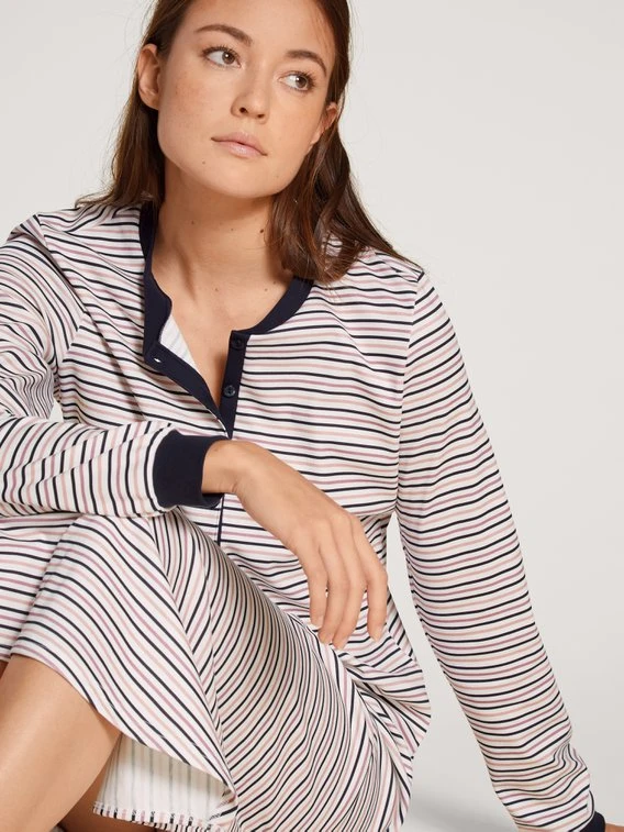 Augen schließen, einkuscheln und ab ins Traumland! Das MIDNIGHT DREAMS Nightshirt von CALIDA ist der perfekte Reisebegleiter: Pflegeleicht und strapazierfähig stellt die warme Baumwolle keine Ansprüche an die korrekte Pflege – und zeichnet sich stattdessen durch kuscheligen Komfort aus. Das Streifen-Design hat immer Saison und passt hervorragend zur geraden Silhouette.