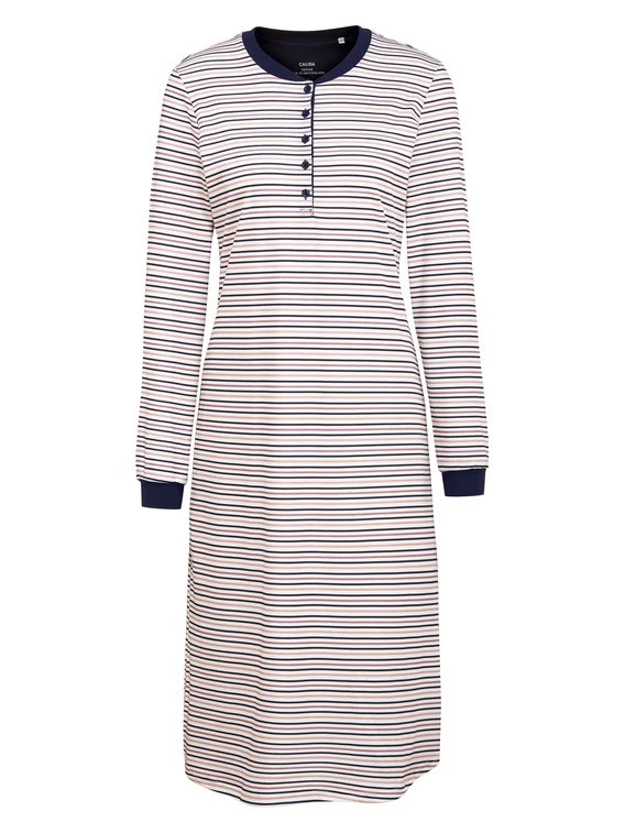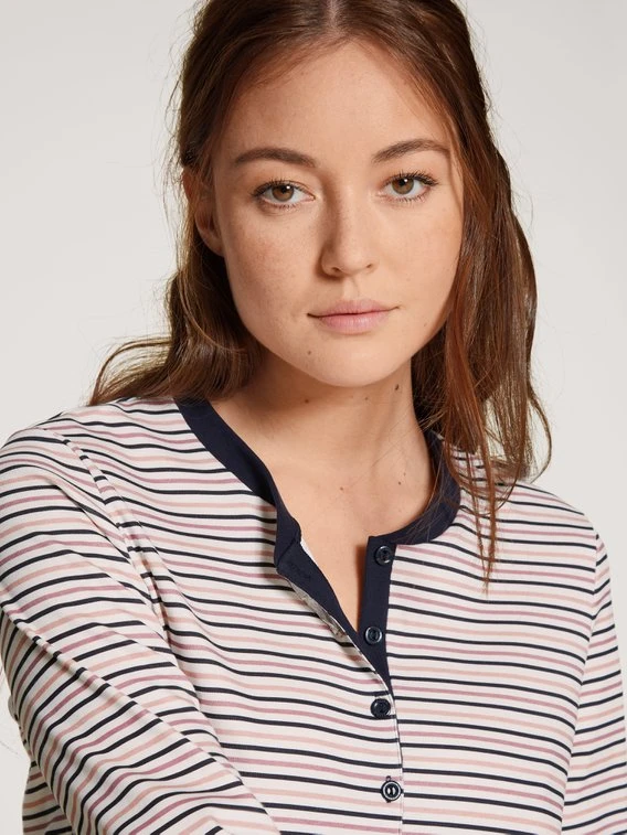 Querstreifen machen was? Genau, süße Träume! Das MIDNIGHT DREAMS Langarm-Nachthemd von CALIDA feiert den zeitlosen Klassiker Streifenprint und kuschelt den Körper in warme Baumwolle. Eine Knopfleiste schafft individuellen Tragekomfort und modelliert die Optik. Wie es sich für ein durchdachtes Alltagsmodell gehört, darf dieses Nightshirt gern häufig gewaschen und noch häufiger getragen werden.