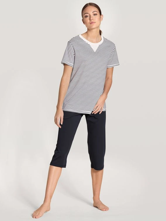 Mit dem MIDSUMMER DREAMS 3/4-Pyjama von CALIDA lösen Sie das Ticket für Ihre persönliche Trauminsel. Die Capri-Hose mit elastischem Bund verbreitet Sommergefühle. Auch das luftige Shirt im maritimen Streifenlook beamt uns in Gedanken ins Urlaubsparadies. Dank luftiger Baumwolle in pflegeleichter Interlock-Qualität kommen wir dabei noch nicht einmal ins Schwitzen.