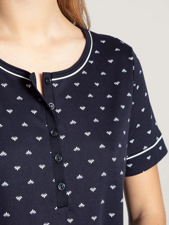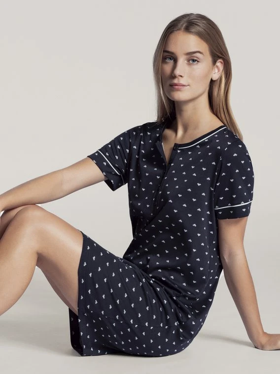 Sleepshirt aus der Nachtwäsche-Basic-Serie NIGHT LOVER von CALIDA. Das Nachthemd mit kurzem Arm wurde aus 100% Supima®-Baumwolle gefertigt und lädt zum erholten Träumen ein. Die klassische Farbgebung rundet den Look ab.