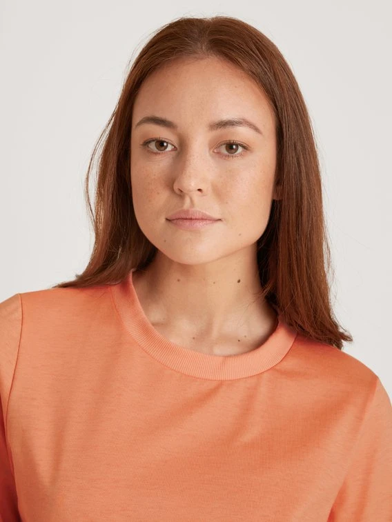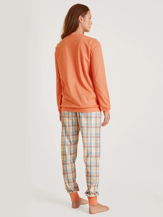 Zum Träumen! Das Oberteil des CALIDA Bündchen-Pyjamas aus der Serie COTTON SPECIAL wird an Ärmeln, Saum und Kragen mit weichen, elastischen Rippbündchen eingefasst. Perfekt dazu die Hose in passender Farbgebung. Verarbeitet aus reiner Baumwolle in Single Jersey-Qualität.
