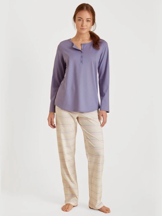 Langer Damen-Pyjama aus der Serie COTTON SPECIAL von CALIDA. Die Verarbeitung aus 100% Baumwolle zeichnet sich durch eine besonders glatte Optik und einen geschmeidigen Griff aus.