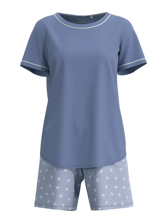 Für angenehme Nächte gibt es diesen modischen Kurz-Pyjama von CALIDA aus der Serie SWEET DREAMS. Hier wird ein unifarbenes Oberteil gekonnt zur gemusterten kurzen Hose kombiniert. Der Style aus reiner Baumwolle ist bei 60°C waschbar und somit äußerst pflegeleicht.