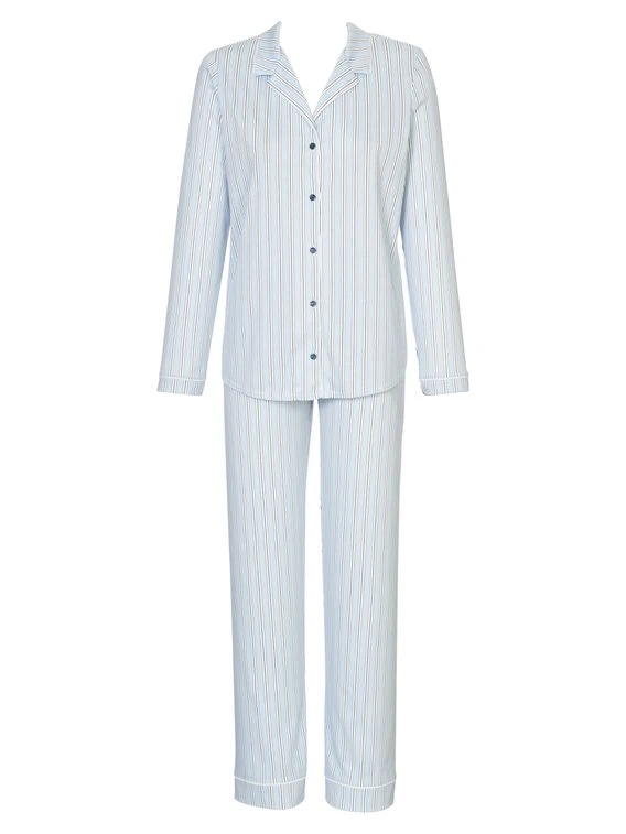 Durchgeknöpfter Damenpyjama aus der CALIDA-Serie SWEET DREAMS aus Baumwoll-Interlock. Die Knopfleiste und der Reverskragen sorgen für einen komfortablen Style im angesagten Boyfriend-Look.