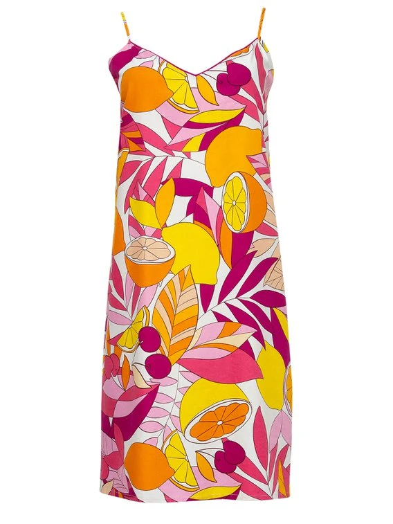 Das farbenfrohe Nachthemd aus der Serie “Emmi” von CYBERJAMMIES ist ein wahrer Blickfang. Mit einem hautfreundlichen Baumwoll-Modal-Mix ist das Nachthemd die perfekte Wahl für warme Sommernächte. Die figurumspielende Passform bietet einen bequemen Sitz mit ausreichend Beinfreiheit. Besonderheiten des Sleep-Dress sind die zarten Spaghettiträger, der leichte V-Ausschnitt und der sommerliche Print.