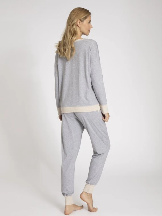 Bei diesem Pyjama von DKNY wird Style großgeschrieben. Die lockere Schnittform findet sich sowohl im Oberteil als auch in der Hose wieder. Der große DKNY Aufdruck am Oberteil zieht alle Blicke auf sich. In einem Mix aus Baumwolle und Viskose ist entspanntes Wohlfühlen vorprogrammiert.