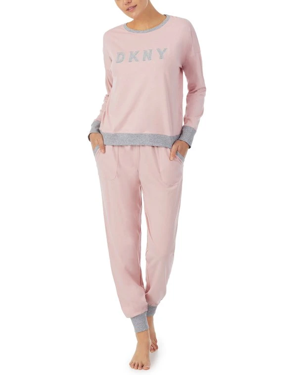 Bei diesem Pyjama von DKNY wird Style großgeschrieben. Die lockere Schnittform findet sich sowohl im Oberteil als auch in der Hose wieder. Der große DKNY Aufdruck am Oberteil zieht alle Blicke auf sich. In einem Mix aus Baumwolle und Viskose ist entspanntes Wohlfühlen vorprogrammiert.