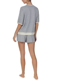 Der lange Pyjama von DKNY aus der Serie “New Signature” steht für ein angenehmes Tragegefühl. Die leichte Single Jersey-Qualität aus Baumwolle und Viskose legt sich sanft an Deinen Körper und lädt zum Relaxen und Entspannen ein. Der klassische Schnitt wird durch kontrastfarbene Nähte aufgelockert. Das Hemdoberteil verfügt über eine kleine Brusttasche und ist am Saum abgerundet. Die Hose kann mit einem Kordelzug praktisch geschnürt werden.