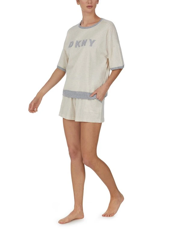 Bei diesem Pyjama von DKNY aus der “New Signature” Serie wird Style großgeschrieben. Die lockere Schnittform findet sich sowohl im Oberteil als auch in der Hose wieder. Der große DKNY Aufdruck am Oberteil zieht alle Blicke auf sich. In einem Mix aus Baumwolle und Viskose ist entspanntes Wohlfühlen vorprogrammiert.