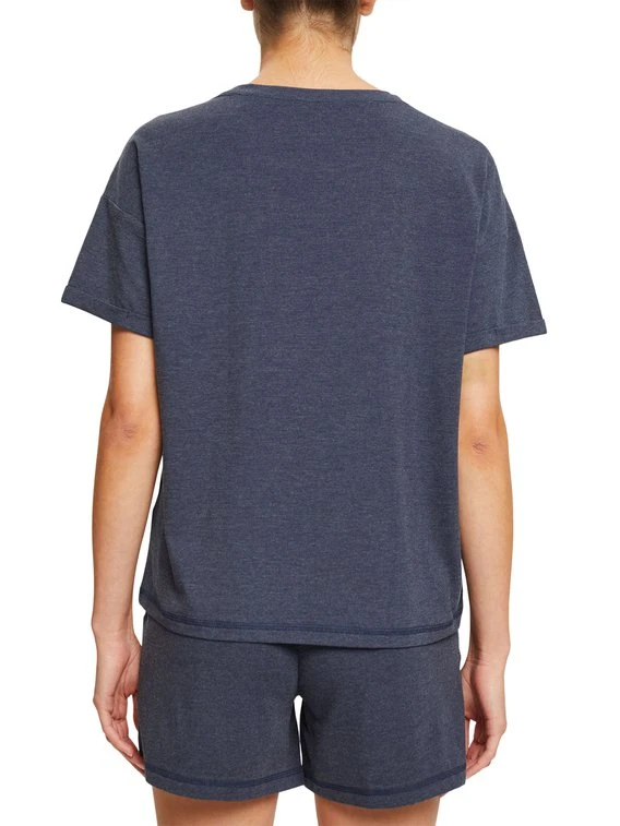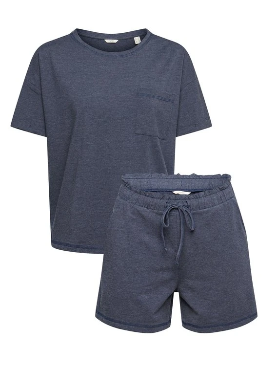 Das Set von ESPRIT überzeugt mit einem weichen, elastischen Baumwoll-Mix, um höchsten Tragekomfort für erholsame Stunden zu bieten. Das Set besteht aus einem leicht taillierten T-Shirt mit Brusttasche und einer gerade geschnittenen Short mit breitem Stretchbund. Die melierte Optik verleiht dem Kurz-Pyjama zudem einen modischen Look.