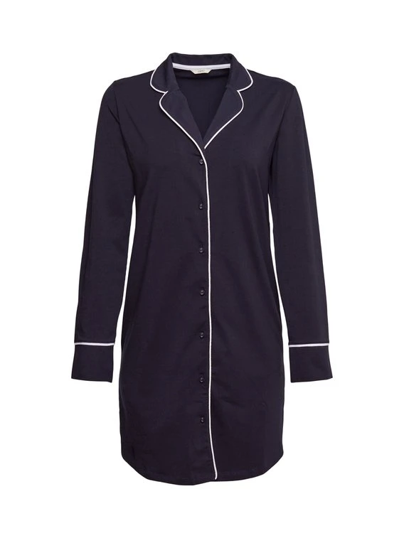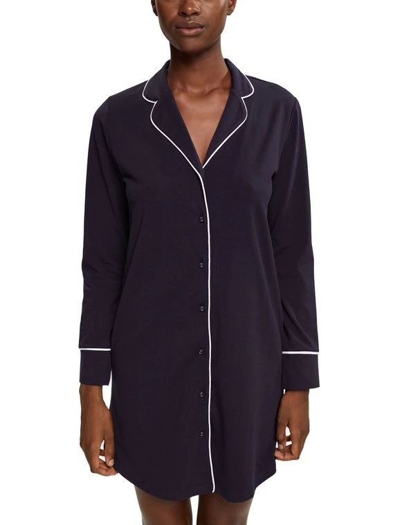 Unifarbenes Nachthemd aus der Serie “Casual” von ESPRIT. Ein hochwertiges Nightshirt im figurumspielenden Schnitt mit Reverskragen und farblich abgesetzter Paspellierung. Dank Baumwolle mit geringem Elasthan-Anteil schmiegt sich das Material sanft und angenehm an den Körper an, damit ist ein erholsamer Schlaf garantiert. Ein wahrhaftiger Klassiker, der in keinem Schrank fehlen sollte.