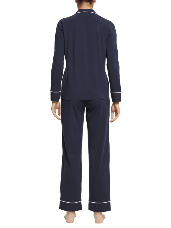 Unifarbener Pyjama aus der Serie “Basic” von ESPRIT. Ein hochwertiger Pyjama im figurumspielenden Schnitt mit Reverskragen und fablich abgesetzter Paspellierung. Dank hautschmeichelnder Baumwolle mit geringem Elasthan-Anteil schmiegt sich das Material sanft und angenehm an den Körper an und sorgt so für höchsten Tragekomfort.