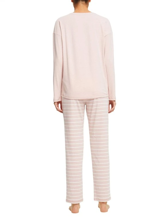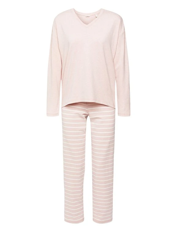 Bezauberndes Pyjama-Set von ESPRIT aus der Serie “Stripe Cotton”. Für ein angenehmes Tragegefühl auf der Haut sorgt der weiche Baumwollmix. Das Langarm-Oberteil mit eingefasstem V-Ausschnitt ergänzt eine lange Pant im beliebten Streifen-Look. Ein Outfit für relaxte Abende und kuschelige Nächte.