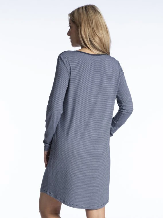 Das Nightshirt der Serie „Jayla“ aus dem Hause ESPRIT überzeugt mit einem zeitlosen Design und einem gemütlichen Tragegefühl. Das langärmelige Nachthemd besteht aus einem elastischen Viskose-Gewebe, das sich besonders angenehm auf der Haut trägt. Der schöne Streifen-Look und der raffinierte Kragen setzen zudem modische Akzente.