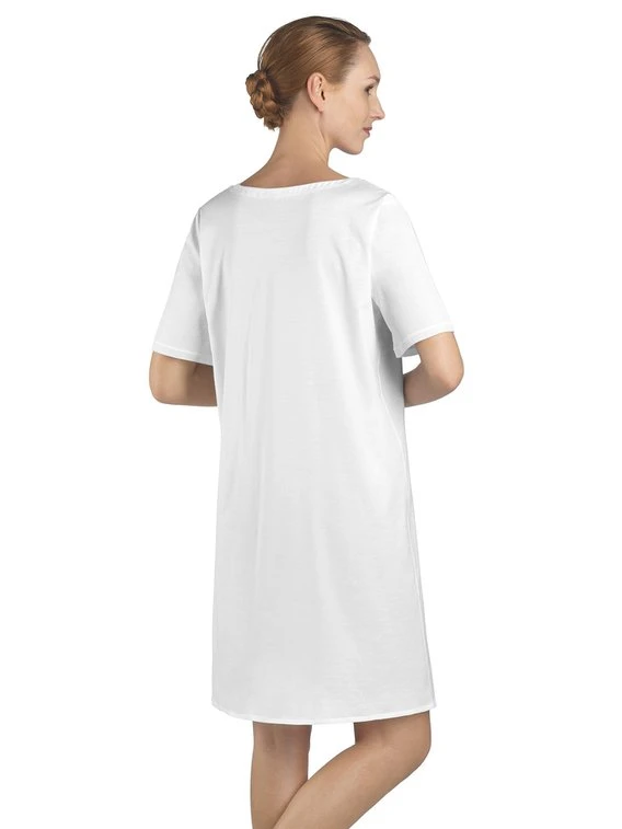 Stilvolle Damen lieben das Kurzarm-Nachthemd aus der „Cotton Deluxe“-Serie von HANRO! Die leichte Pima-Baumwolle sorgt für ein angenehmes Tragegefühl die ganze Nacht und der weite, fließende Schnitt umschmeichelt den Körper.