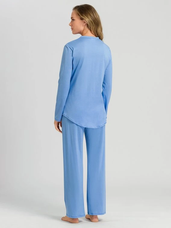 Der klassische Pyjama der Basic-Serie “Cotton Deluxe” von HANRO ist der perfekte Begleiter für traumhafte Nächte. Die leichte Pima-Baumwolle sorgt für ein angenehmes Tragegefühl die ganze Nacht und das dezente Oberhemd mit offenem V-Ausschnitt garantiert einen stilvollen Auftritt. Die lange Pyjamahose mit geradem Bein bietet viel Komfort und Bewegungsfreiheit für eine angenehme Nachtruhe.