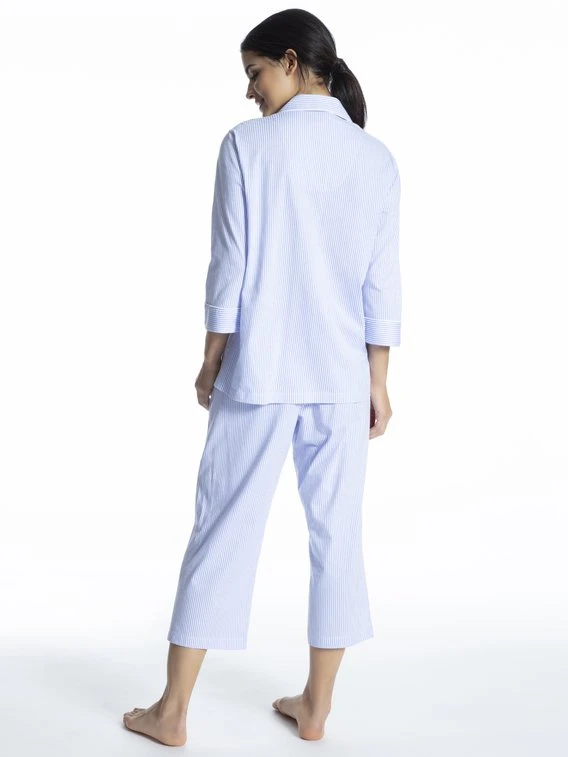 Der Capri-Pyjama von LAUREN BY RALPH LAUREN aus der Serie “Heritage Knits” vermittelt einen komfortablen Tragekomfort. Das zarte Streifen-Muster zieht sich über den gesamten Schlafanzug und erzeugt einen klassischen Look. Das Oberteil verfügt über eine durchgehende Knopfleiste mit Reverskragen. Die Hose ist locker geschnitten und kann am Bund mit einem Kordelzug geschnürt werden.