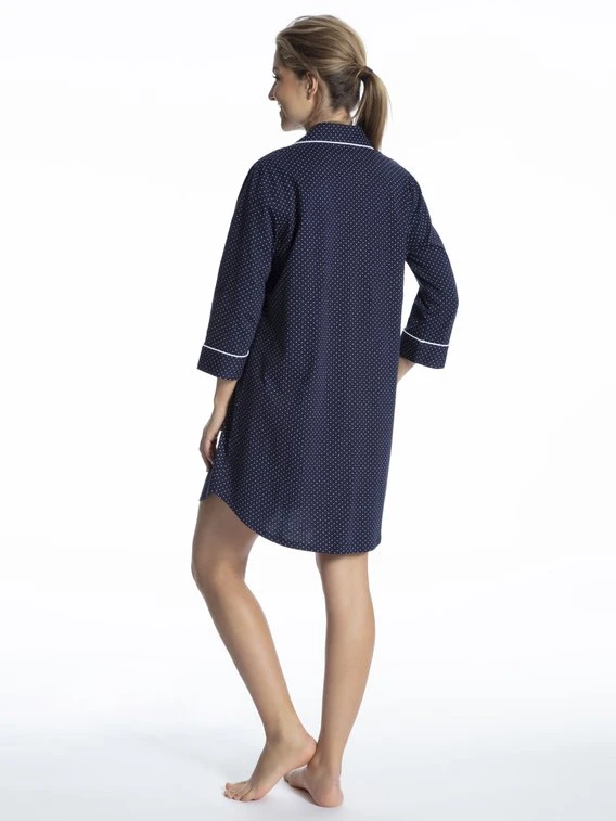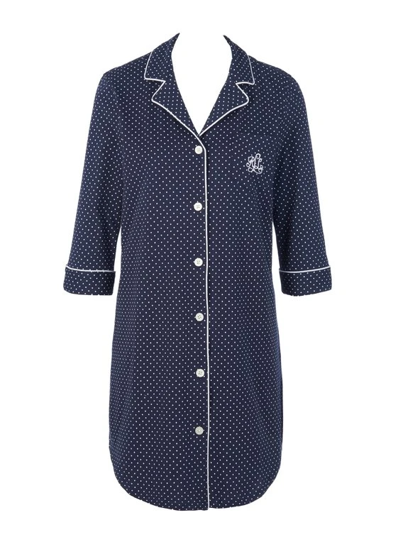 Nachtblaues Punkte-Design in bester Qualität – das ist das Nachthemd von LAUREN BY RALPH LAUREN für Damen. Das Sleepshirt ist locker geschnitten und komplett durchgeknöpft. Seinen klassischen Look erhält es durch den Reverskragen und die aufgesetzte Brusttasche auf der linken Seite.