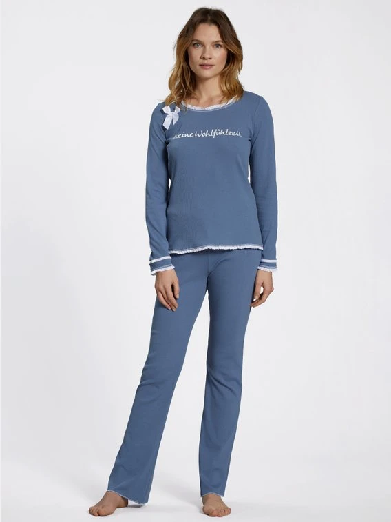 Romantisch, süß und unglaublich komfortabel ist der Pyjama aus der Serie „Meine Wohlfühlzeit“ von LOUIS & LOUISA. Der Stoff aus Baumwolle mit geringem Elasthan Anteil ist besonders angenehm zu tragen und sorgt somit für eine erholsame Nacht.