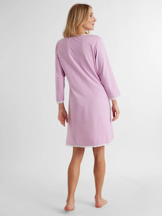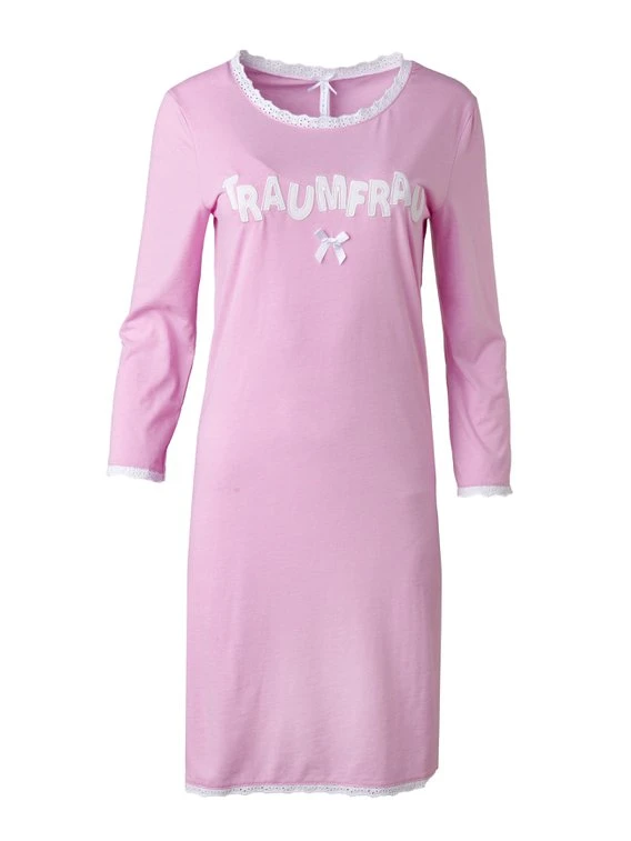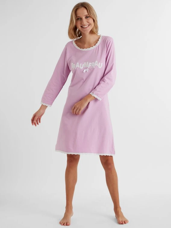 LOUIS & LOUISA präsentiert ein traumhaftes Langarm Nachthemd aus der Serie “Traumfrau”. Die reine Baumwolle liegt angenehm auf der Haut und ermöglicht ein tolles Tragegefühl. Das Satinschleifchen auf der Brust versüßt den Look noch für das gewisse etwas.
