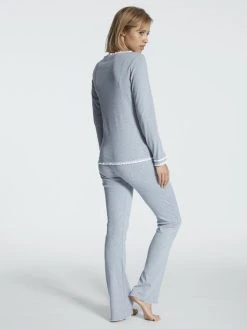 LOUIS & LOUISA präsentiert einen Langarm-Pyjama aus der “Winterwunderland” Serie. 100% Baumwolle liegt angenehm weich auf der Haut und sorgt für wahre Wohlfühlmomente. Das süße Satinschleifchen auf der Brust und die Paspelierung an Reverskragen und Beinabschlüssen ergänzen den Allover Tannen Look des Sets perfekt.