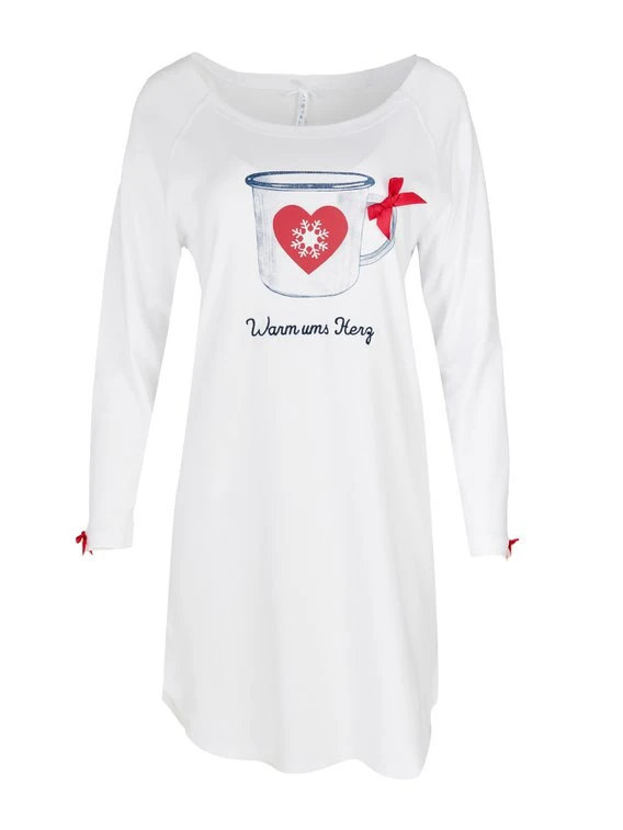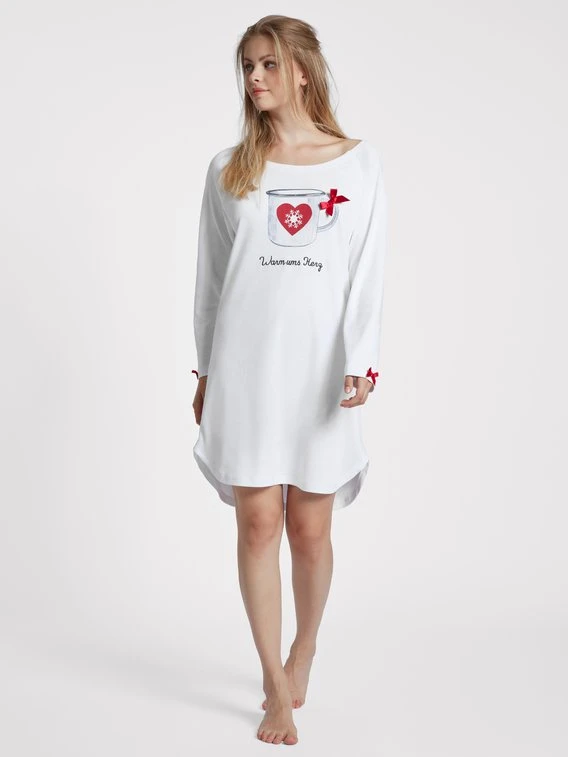LOUIS & LOUISA lädt mit dem Langarm-Nachthemd aus der “Wunderbare Kuschelzeit” Serie zum gemütlichen Kuscheln ein. 100% Baumwolle und der figurnahe Schnitt liegen angenehm weich und leicht auf der Haut und verzaubern mit tollem Tragegefühl. Bezaubernde Details wie das Tassenmotiv mit Satinschleifchen und dem Spruch “Warm ums Herz” runden das herzliche Design perfekt ab.