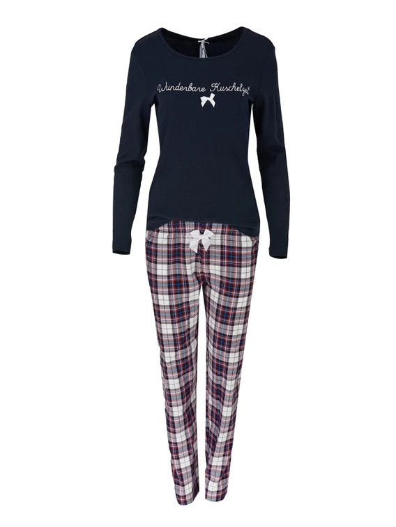 LOUIS & LOUISA präsentiert den Pyjama aus der “Wunderbare Kuschelzeit” Serie. 100% Baumwolle liegt angenehm weich auf der Haut und sorgt für erholsame Nächte. Das Oberteil verzaubert mit dem gestickten Spruch “Wunderbare Kuschelzeit” und wird durch ein Satinschleifchen perfekt ergänzt. Dazu komplementiert die gerade geschnittene Hose im Karo-Allover, den Look zum Wohfühlen.