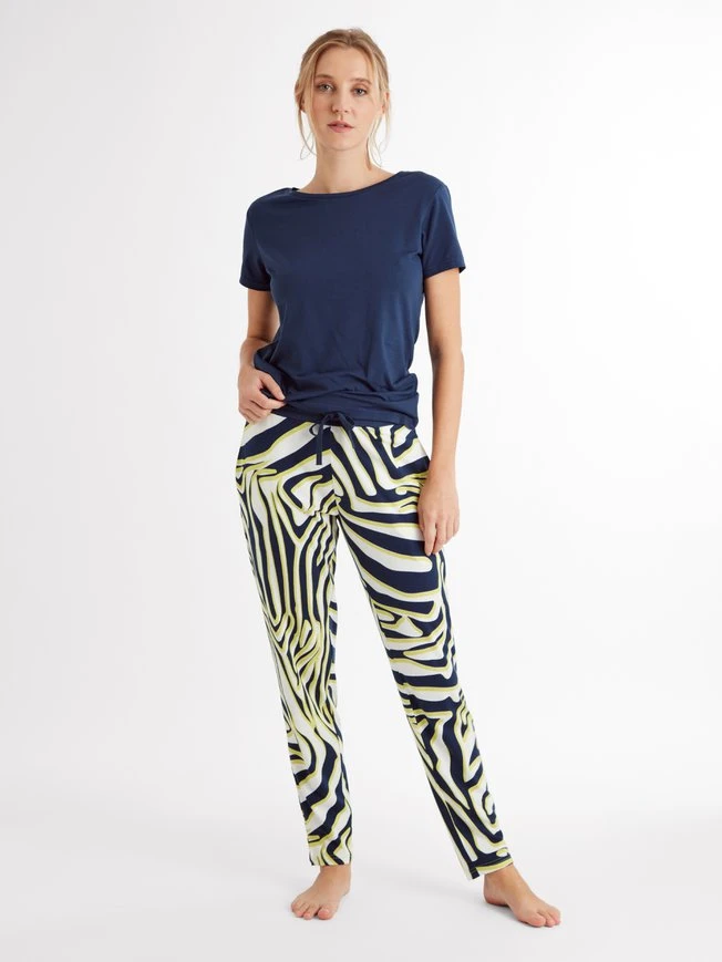 In frühlingsfrischen Farben präsentiert sich dieses coole Lounge-Set aus der Serie “Anh” der Marke MEY. Der Zweiteiler überzeugt mit einem angenehmen Mix aus weicher Baumwolle und hautfreundlichem Modal und sorgt so für ein tolles Tragegefühl. Mit auffällig farbigem Animal-Muster begeistert das Design nicht nur durch Optik sondern auch durch die legere Schnittform.