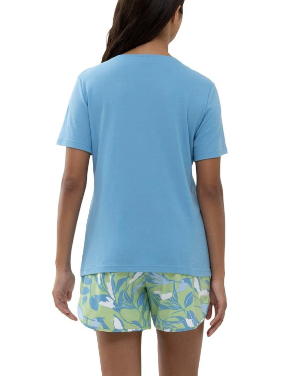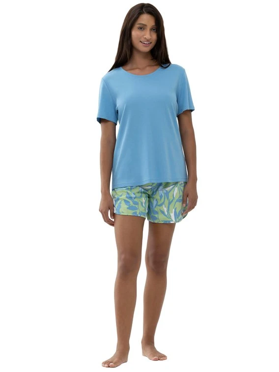Der Kurz-Pyjama der Serie “Danielle” ist Teil der mynight-Kollektion der deutschen Qualitätsmarke MEY und zeichnet sich durch ein sommerlich frisches Design sowie hohen Tragekomfort aus. Der Schlafanzug besteht aus weicher Baumwolle in fester Interlock-Qualität, die über eine hervorragende Wärmeleistung verfügt.
