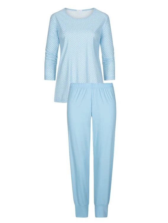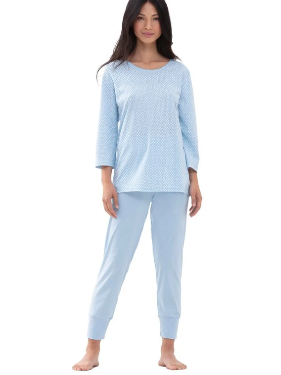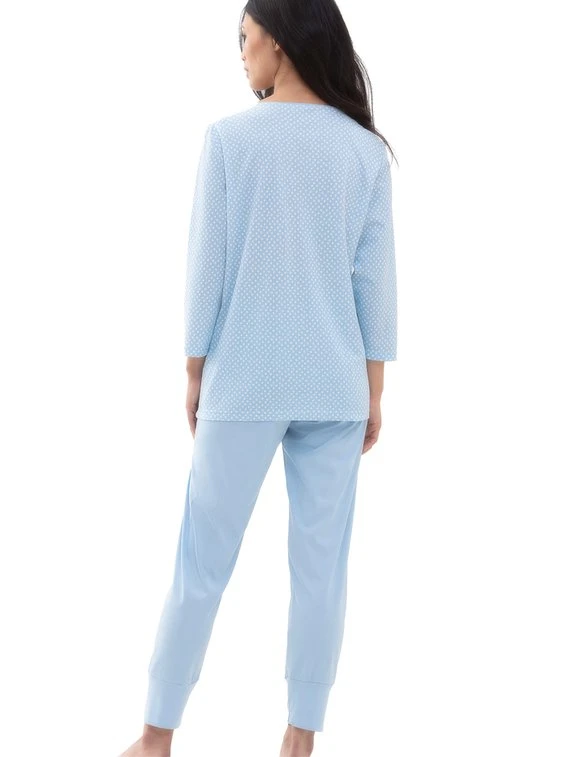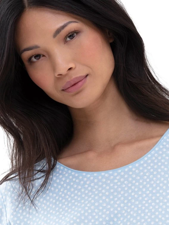 Der 7/8-Pyjama der Serie “Emelie” ist Teil der mynight-Kollektion der deutschen Qualitätsmarke MEY und zeichnet sich durch ein zeitloses Design sowie hohen Tragekomfort aus. Der Schlafanzug besteht aus weicher Baumwolle in fester Interlock-Qualität, die über eine hervorragende Wärmeleistung verfügt.