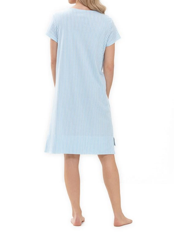 Mit der Serie „Sleepsation“ bringt MEY gemütliche Nachtwäsche im klassisch-zeitlosen Design auf den Markt, die aus reiner Bio-Baumwolle besteht und mit dem GOTS-Zertifikat sowie dem Grünen Knopf ausgezeichnet ist. Das Kurzarm-Nachthemd bietet dank des geraden, figurumspielenden Schnitts maximale Bewegungsfreiheit. Das pflegeleichte Baumwollgewebe des Nachthemds vermittelt zudem ein natürliches, angenehm warmes Tragegefühl.
