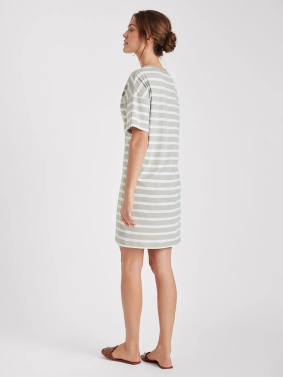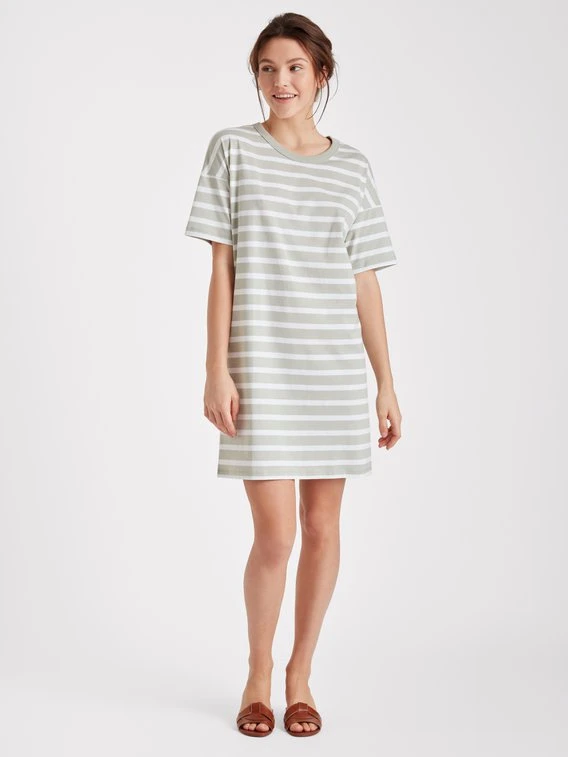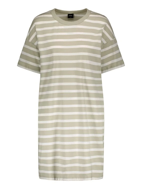 Eine entspannte Zeit Zuhause ist mit diesem Nachtkleid von NANSO aus der Kollektion “Maininki” garantiert. Die Single Jersey Verarbeitung aus hochwertiger, reiner Baumwolle ist herrlich angenehm und sorgt für ein softes Tragegefühl. Die überschnittenen Schultern und der figurumspielende Schnitt ermöglichen dabei einen idealen Sitz.