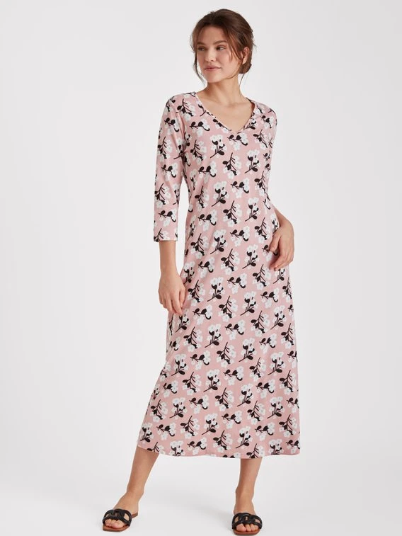 Eine entspannte Zeit Zuhause ist Ihnen mit diesem Nachtkleid von NANSO garantiert. Es wirkt besonders raffiniert dank der lässigen Schnittform, der schlichten Farbgebung und dem femininen Print. Die Single Jersey-Verarbeitung aus hochwertigem Baumwoll-Modal-Mix ist herrlich angenehm und sorgt für ein softes Tragegefühl.