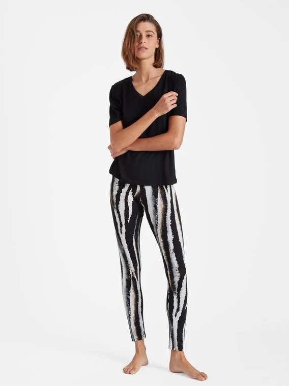NINA VON C. präsentiert eine stylische Leggings aus der “Loungewear Balance” Serie. Seidig weicher Modal-Elasthan-Mix schmiegt sich angenehm weich an die Haut an und sorgt so für einen einmaligen Tragekomfort. Das Design besticht durch seinen auffälligen All-Over-Print. Eine vielseitig kombinierbare Leggings, die in keinem Kleiderschrank fehlen darf.