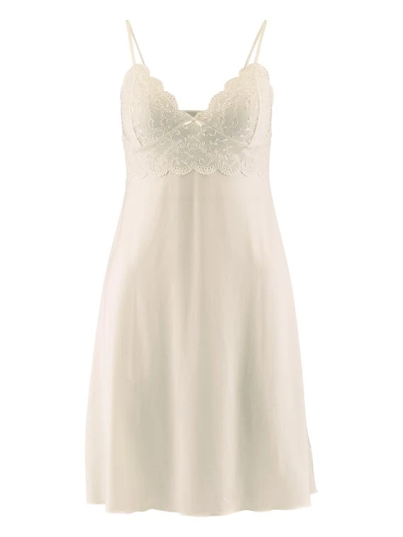 Das Negligé aus der Serie „Silver Edition“ steht für Eleganz und Komfort. Das feminine Nachthemd im Spitzendesign überzeugt mit seinen dünnen Trägern und zarter Transparenz. Die florale Spitze und die eingearbeitete Bogenspitze zaubern ein schönes Dekolleté. Das Zierschleifchen vervollständigt das verspielte Design.