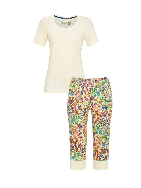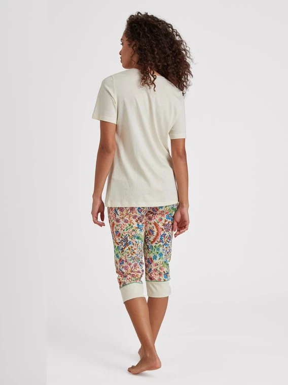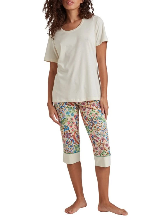 Der Capri-Pyjama aus der “B.l.o.o.my”-Kollektion von RINGELLA versprüht durch farbenfrohes Design, lust auf Sommer und Sonnenschein. Der weiche Baumwoll-Modal-Mix liegt dabei leicht auf der Haut und schafft einen idealen Temperaturausgleich. Mit dem Set, steht dem Start in den Frühling nichts mehr im Weg.