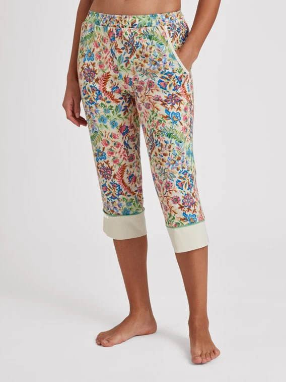 Capri-Pants mit farblich abgesetztem Beinabschluss