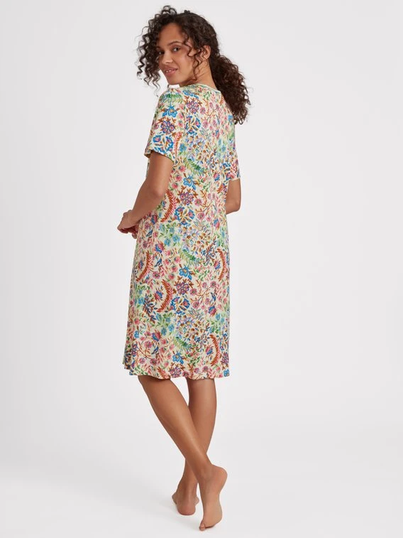 Das Nachthemd von RINGELLA aus der Serie „Bloomy“ überzeugt mit einem floralen Allover-Print. Das Material aus Baumwolle und Modal liegt angenehm weich auf der Haut und vermittelt ein angenehm natürliches Tragegefühl. Die lockere Schnittform rundet den Look ab.