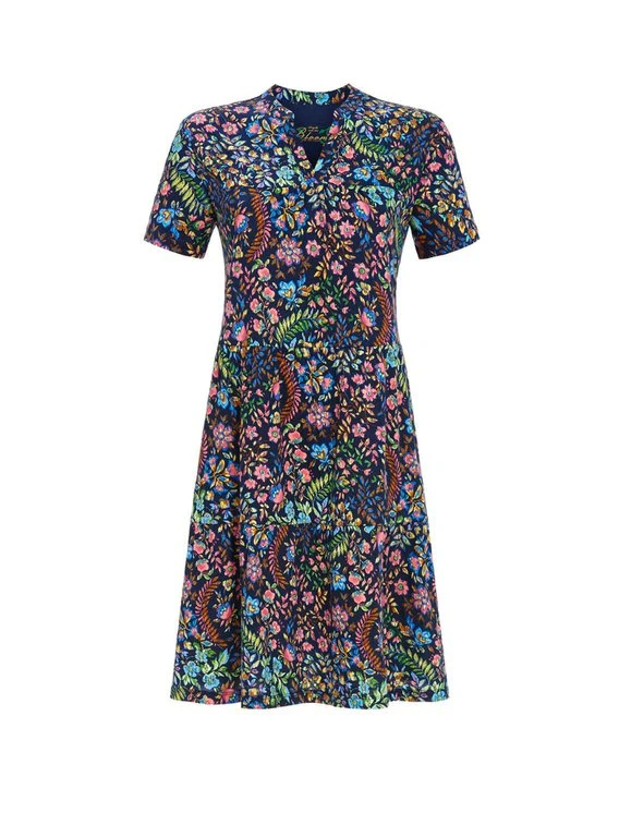 Für angenehme Nächte sorgt dieses Kurzarm-Nachthemd der Serie „B.l.o.o.my“ von RINGELLA. Es hat ein farbenfrohes Blumenmuster, eine luftig-leichte Passform und einen modischen Serafinokragen. Für ein weiches und angenehmes Tragegefühl sorgt die hochwertige Baumwoll-Modalware.