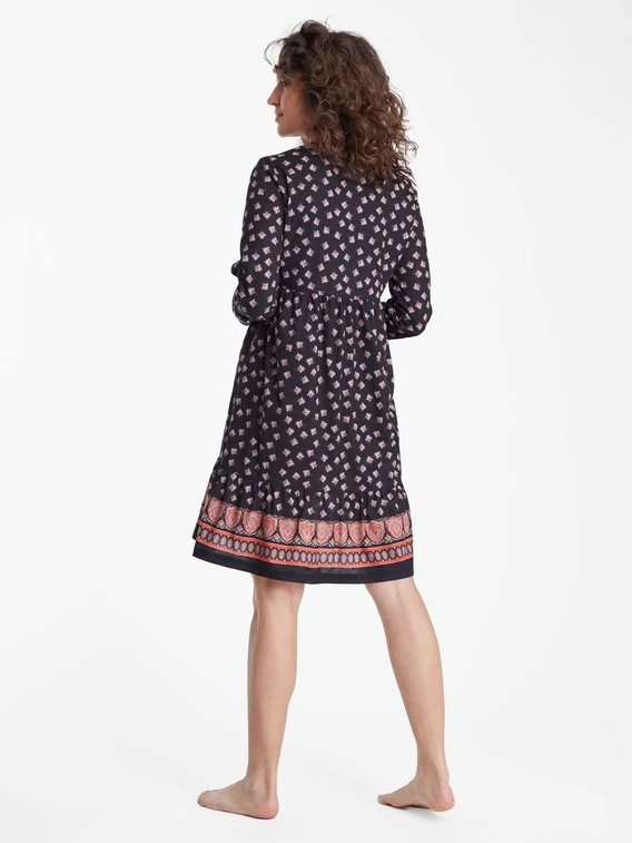 Das Nachthemd der Serie „Lingerie“ von RINGELLA macht sowohl als Nightshirt als auch als Loungedress eine gute Figur. Die Materialzusammensetzung aus Baumwolle und Modal liegt leicht am Körper an und verschafft ein angenehmes Tragegefühl. Das romantisch, verspielte Muster macht das Kleid zu einem echtem Must-have! Die horizontalen Nähte mit Raffung verleihen dem Nachthemd zudem eine feminine Note.